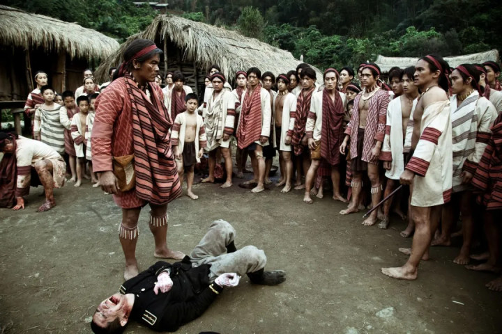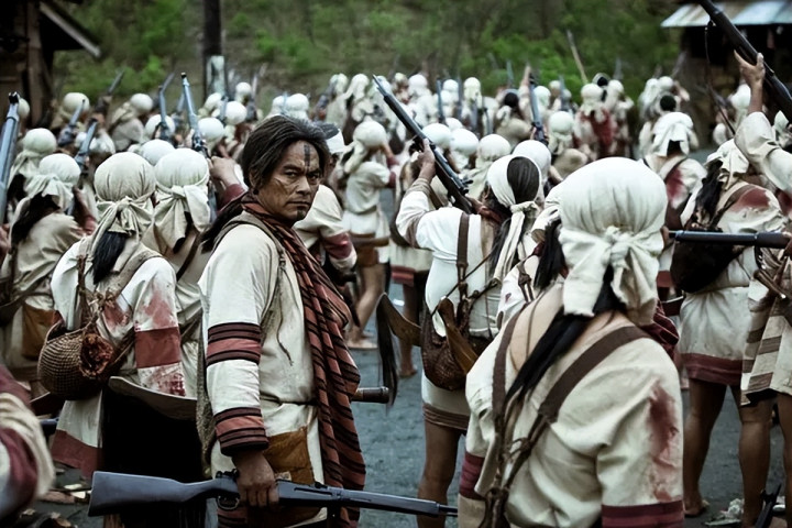 这正是《赛德克·巴莱》最牛逼的地方。 它没有否认现代文明带来的物质进步,但它指出了一个更核心的问题: 当文明以剥夺尊严为代价时,这种文明,哪怕再先进,也是肮脏的。 于是,雾社事件爆发了。 在那场日本人举办的运动会上,赛德克人冲了出来。 他们砍下了日本人的头,无论男女老少。 这里,导演魏德圣没有回避赛德克人的残忍。 他们杀红了眼,甚至误杀了自己的汉人同胞,连穿和服的日本女人和孩子也没放过。 这一幕幕血腥的镜头,让很多观众感到不适。 但这种不适,恰恰是真实的。 这不是好莱坞式的英雄电影,这里没有完美的受害者。 这是两个族群、两种文明之间,你死我活的撕咬。